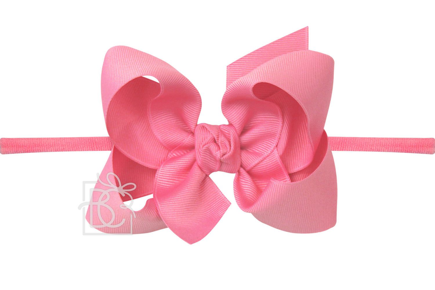 Each bow is hand-tied to an alligator clip, making it easy to wear alone or attach to a soft, narrow elastic headband or a lightweight, thicker nylon head wrap. The pantyhose style bows are pre-attached to the headband and are not interchangeable*.