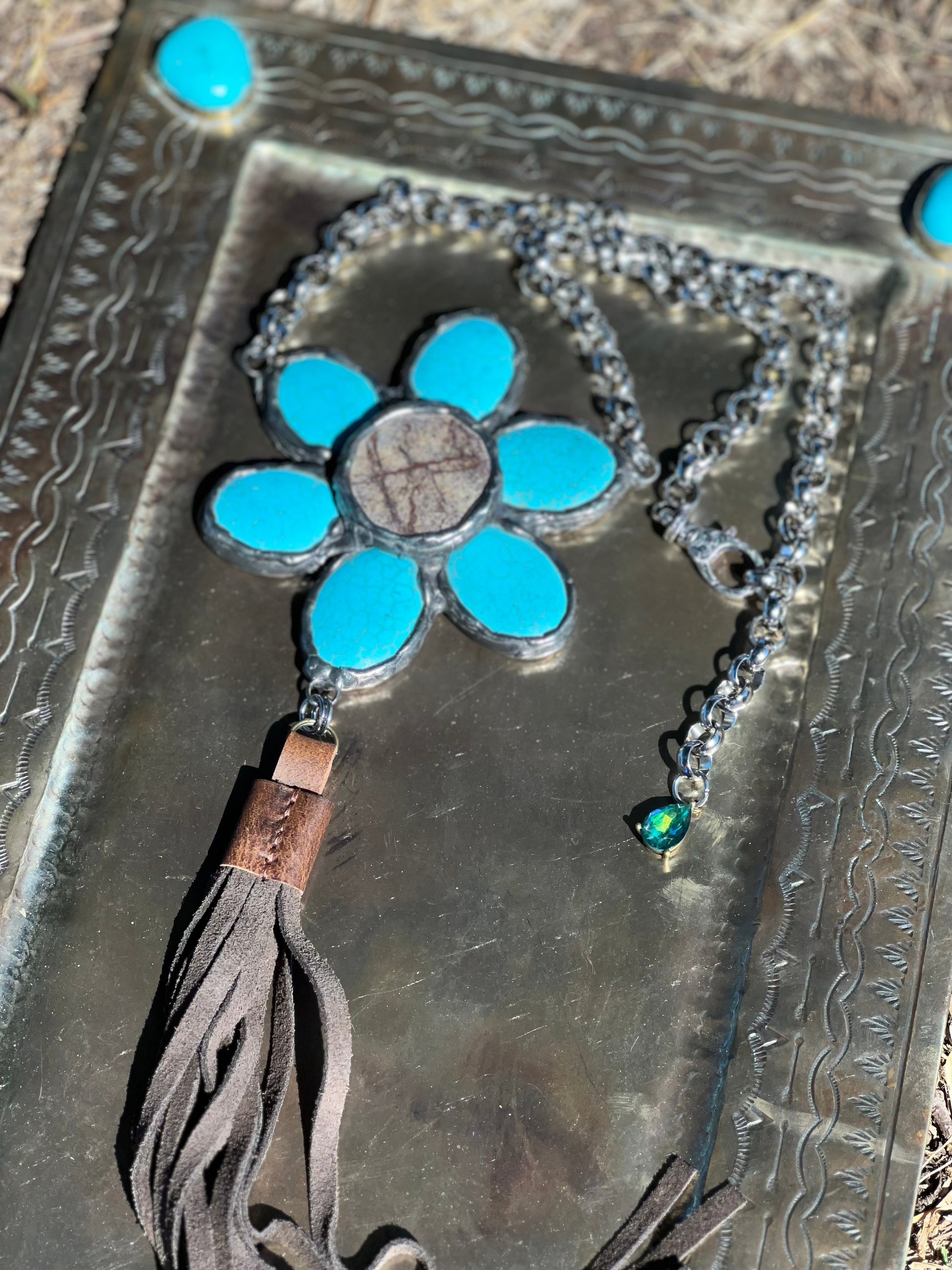 Stunning one of a kind handcrafted showstopper! 26” from clasp to tip of tassel. Tassel alone is 11”. From the clasp to the jeweled end no detail was overlooked on this piece!